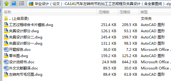 本次毕业设计的题目是CA141左转向节规程及工装设计。我主要需要完成的包括加工工艺的安排以及两种专用机床夹具设计。为了保证加工零件的精度同时节约成本和缩短加工周期以及提高加工效率,那么一个良好的工艺安排以及专用夹具的设计就是必不可少的了。在工艺的安排上不但要考虑合理的加工要求还要考虑到操作者以及加工机械的安全。同时夹具的设计上也要考虑到使用的安全性和经济性以及安装和拆卸上的方便性。设计一个良好的工艺工装安排路线那么必须要经过对加工件的详细分析以及周密的考虑后才能得出。所以分析问题是解决问题的关键,同时还要反复的调整,来寻求最好的一个路线。这样才能让工艺路线更加的完美,才能保证工件的加工精度和加工效率以及节约材料。