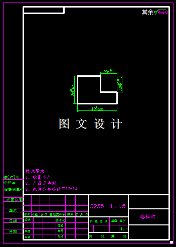 本次设计的是一个平板,板料厚度为1.5mm,材质为Q235,工件外形成L形,中间没有任何的孔,因此,