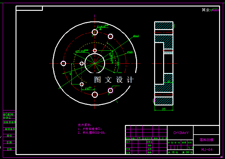 本次设计的零件名称是座,圆形零件,中间有个圆形翻孔,翻孔之前首先要计算预孔直径,所以基本工序有落料,冲孔,翻孔,本次设计就是设计这三个工序的复合模。