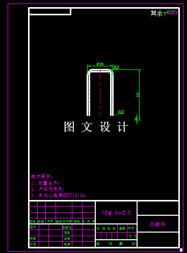 该零件加工需先落料,然后拉深,然后切边等3道工序,冲压工序中,落料和拉伸可以复合,切边采用单工序模具,具体拉深次数需要通过详细的拉深系数计算分析后才能知道,这样设计比较合理。本次设计只需要设计切边模。