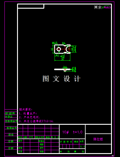 本次零件的的加工工序为外形落料,中间冲孔组合成复合模,然后单独两侧折弯,本次设计只设计复合工序模具,采用倒装结构,在设计模具之前,首先要对工件进行展开尺寸计算,根据这个形状计算和设计模具
