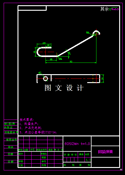 本次设计的工件,形状复杂,通过多次弯曲才能实现,产品上有1个直径φ7mm的孔,在冲压过程中,此孔位置精度要求不高,完全可以弯曲之前冲出来,且孔边到外形的最小距离为3.5mm,远大于2t=2mm,因此弯曲之前采用落料冲孔复合模实现,本次只设计首次工序模具。