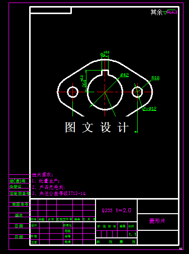 本次设计的工件外形呈菱形,中间有个孔,形状大致对称,所以设计模具时,通过工艺比较,选择倒装结构,落料冲孔复合模,下模弹压卸料装置,上模刚性打料卸料装置,此类结构最为常见。