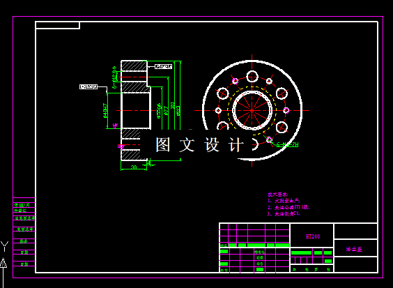 本次设计的零件为法兰盘,零件形状简单,表面很多圆孔,采用压铸模具加工零件时,孔的尺寸需要适当减小,才能进行后续加工,根据要求计算和绘制毛坯图,选择合适的分型面,设计压铸模,选择合适的压铸机,具体见CAD图。
