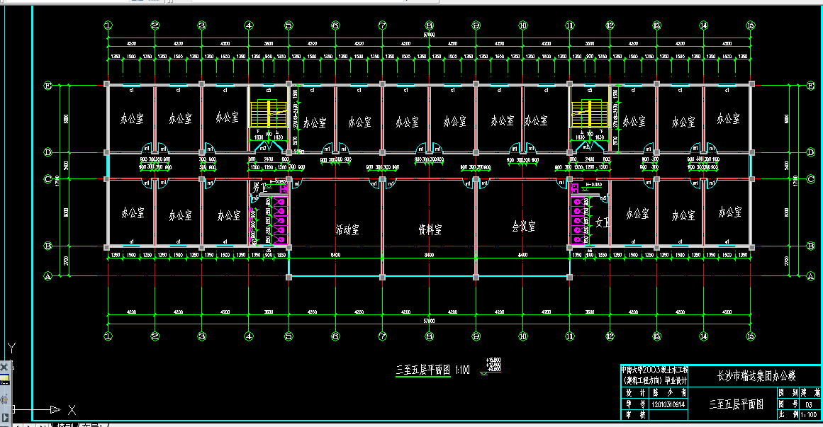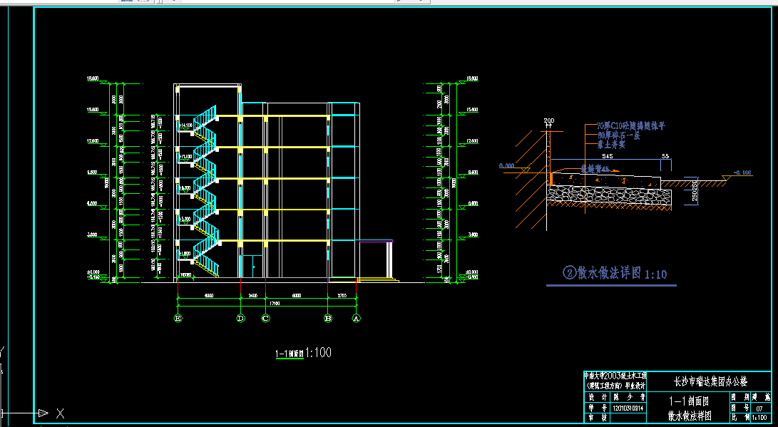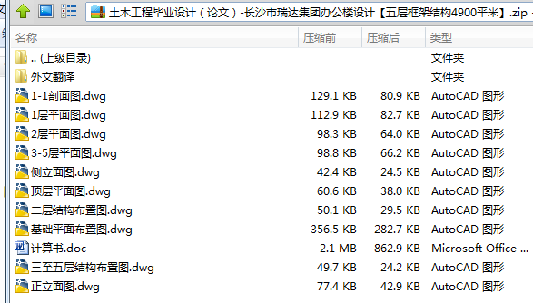 瑞达集团办公楼位于长沙市,总共5层。建筑总高为15.6m,共5层。其中底层层高为3.6m,其余各层层高为3.0m。局部突出屋面的塔楼为楼梯间,高3.0m。