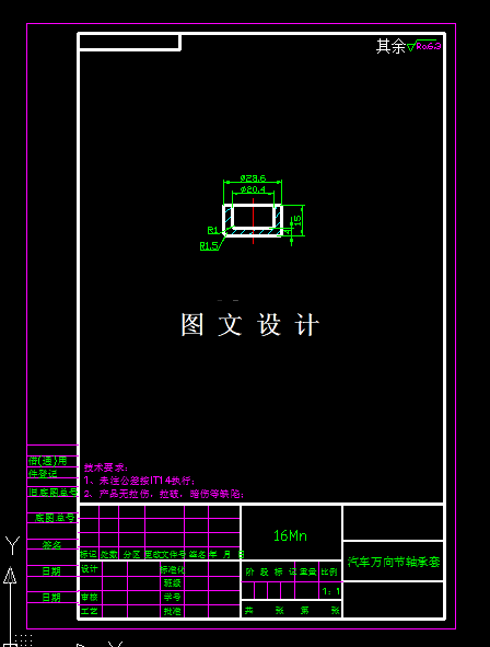本次课题,设计的流程,先把毛坯放在凹模内(毛坯的体积等于零件的体积和修边余量的体积之和),借凸模的压力使金属达到最大的塑形状态,并通过凹模的下通孔或通过凸模与凹模间的环形间隙将金属挤出,利用体积,计算出工件毛坯尺寸,具体见CAD图。