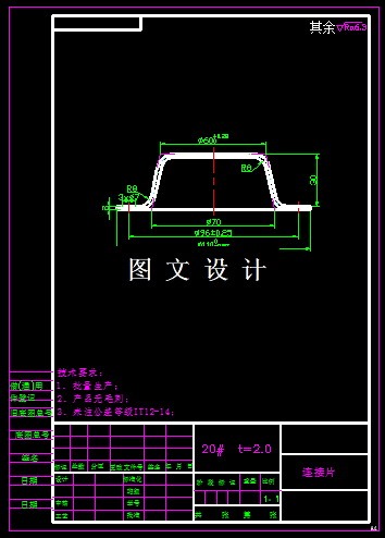 此时图形为带锥度的拉伸件,形状不规则,所以利用表面积相等原则计算展开直径,由于拉伸件是带台阶的零件,形状规则,材料流动均匀,本次设计为级进模,所以每个工步之间的搭边值需要作为侧刃废料值,需要根据材料厚度计算出最小刃口尺寸,才能计算出送料距离,具体工序排样见CAD图纸。