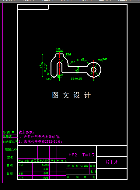 由制件零件图可以知道:制件的外形不规则,尺寸中等,一头大一头小,属于T形零件,产品中间有1个圆孔,孔与外形分开的话需要多次冲裁才能完成加工。通过对零件的初步分析可知,要完成该制件的生产,需要经过以下工艺:冲孔、落料。由于其形状较复杂,为达到一定的生产效率,满足年生产量,我们设计生产效率高的级进模来完成此制件的生产。