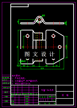 从产品形状看,此产品为两个部分组成,中间部分采用卷圆工艺,中间可以插圆柱销,达到自由转动的目的,此两个产品都需要卷圆工序,由于产品卷圆之前必须要先预弯,所以卷圆,预弯这两个工序少不了,产品外形尺寸有要求,还有弯曲,冲孔等,所以必然要做落料和冲孔,因此落料和冲孔可以做复合模,然后预弯,卷圆,最后弯曲,如此3副模具。
