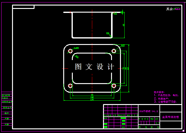 本次设计的清洗槽,是矩形拉深件,所以由图形可知,有落料,拉深,整形,切边,冲孔等多个基本工序,具体拉深次数需要经过详细的计算和分析才能确定,本次设计针对不同的工序,选择其中典型的拉深整形模,切边冲孔模进行计算和设计。