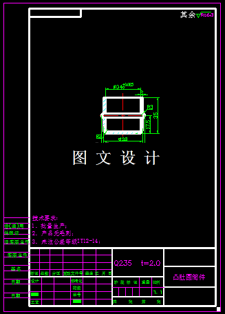 本次设计的形状是带凸肚的圆筒件,工件中间有胀形,但是胀形尺寸不大,而且从材料厚度看,也属于材料变薄原理,对工件的高度和外形尺寸没有任何的影响,所以计算展开尺寸可以直接按直筒形计算,通过计算拉深系数后确定一次拉深成型,胀形部分单独冲压,具体见CAD图纸。