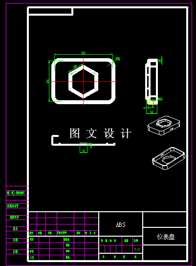 本次设计的是仪表壳,材料是ABS,由于该产品的一侧边有一方槽,所以需要单边抽芯,且是可以外抽,也可以内抽,都能实现,产品的外形形状规则,尺寸比较小,内部空间比较大,所以下模需要采用斜顶机构,考虑到模具加工难度,所以采用一模两腔。