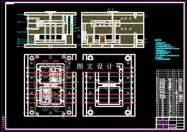 本次设计的图形是工具盒,根据零件所需工艺设计出模具,同时运用AutoCA绘制二维模具装配图和零件图,确定模具和零件的相关计算。根据工件体积,模具数量,选择合适注塑机,并对注塑机进行校核,锁模力脱模行程。