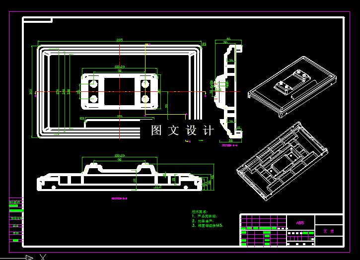 该产品,面板材料为ABS,工件的底面有个型腔,形状复杂,四周呈盒形,侧面有个孔,外形整体呈盒形状,所以在设计模具时需要考虑抽芯问题,工件外形比较大,所以设计一模一腔最合适,如图所示。