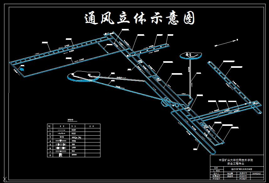 4.矿井通风设计:根据本矿开拓开采条件,采用中央边界式通风,风量分配由内向外计算,工作面采用“U”型通风方式。掘进面用局扇进行压入式通风。根据通风容易、困难时期的通风阻力选择FBCDZ-8-№30型轴流式风机。矿井通过风机反转反风。