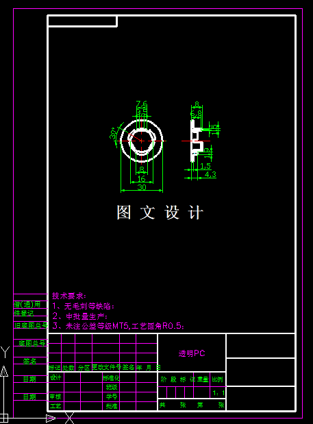 本次设计的课题是“盖圈注塑模具设计”,作为一般的零件,如果生产量比较大,就需要要实现自动脱模,或者一模多腔的设计理念,在模具设计之前要考虑其可行性,此制品外形为圆形,且孔,台阶等细节,所以可以选择一模多腔的方法,提高生产效率,模具结构简单。