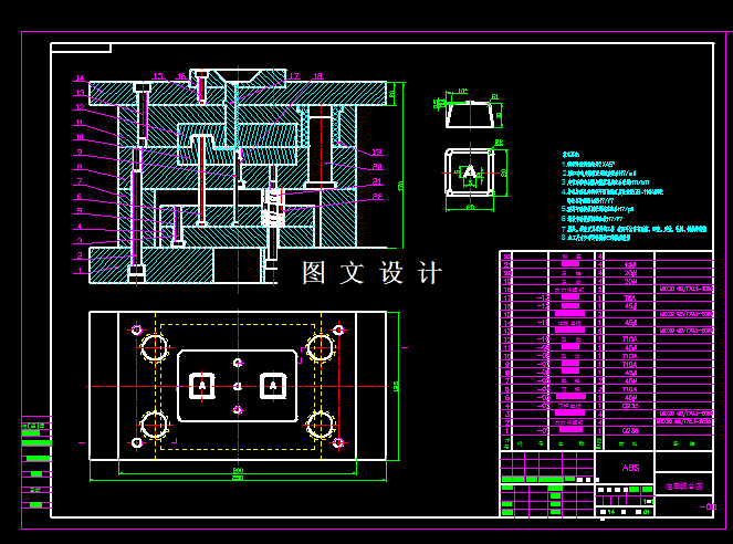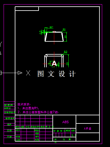 本次设计零件为一锥形件,形状简单,底面有个A字,所以叫A字盒,工件自带锥度,所以无需设计脱模斜度,工件所选材料为ABS,该产品的注塑量为0.57×103mm3 。根据生产需求,所以采用一模两腔。