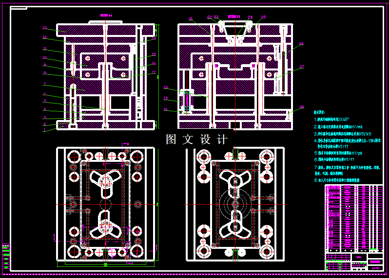 本次迷你风扇塑件,产品的高度尺寸20mm,并且塑件有一定锥度,在模具开模之后是位于动模,因此本次塑件不需要设计脱模斜度。工件所选材料为ABS,是丙烯腈-丁二烯-苯乙烯共聚物,根据批量要求,选择一模两腔结构,具体见CAD图纸。