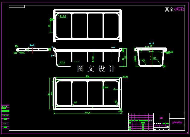该零件在生活中经常见到,属于外观塑件,需要有较好的强度。分析塑件要求,本次选取性能较好的ABS材料,需对本次四组调料盒进行工艺分析,选取合理的浇注系统以及型腔布置、分型面做出选取,本次选用一模二腔的结构,以及点浇口形式,同时还需对成型零件做出尺寸计算等任务和图纸要求。