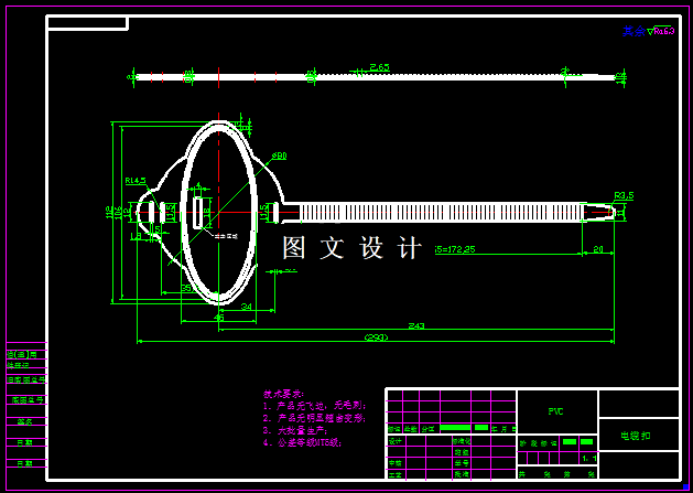 该零件体积不大,外形不规则,整体呈T字形,一个平板形状,一侧成锯齿形,是生活中常见的电缆扣,所选的材料为透明聚氯乙烯,缩写PVC,综合性能较好,冲击强度较高,适合该零件,模具结构简单,如图所示。