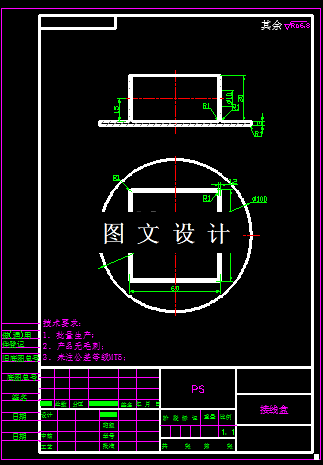 本产品是某机器上的接线盒,该制品要求有高的耐气候性以及优良的集合稳定性,这就要求材料具有良好的强度,材料均匀。产品侧面有两个孔,需要用到侧抽芯机构。外形尺寸比较小,所以采用一模4腔,对称设计,选择合适的注塑机。