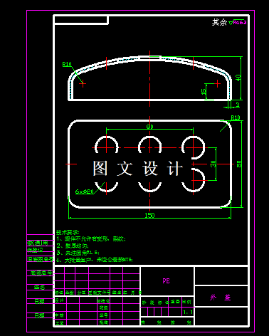 本次设计的外盖的形状简单,底面是6个通孔。罩注塑材料首先选用PE。零件总高度为40mm,两侧面直边部分只有15mm,底面呈弧度状,平均壁厚3mm,所以决定采用一模两腔,型腔平衡布置在型腔板两侧,这样有利于浇注系统的排列和模具的平衡。