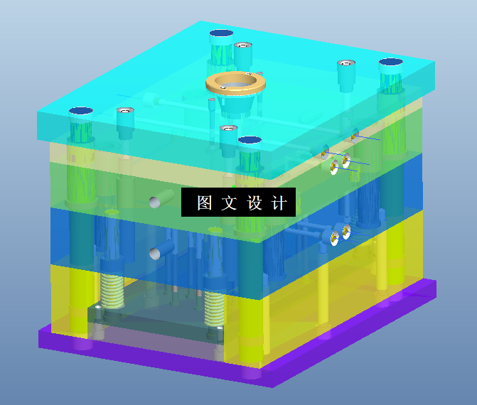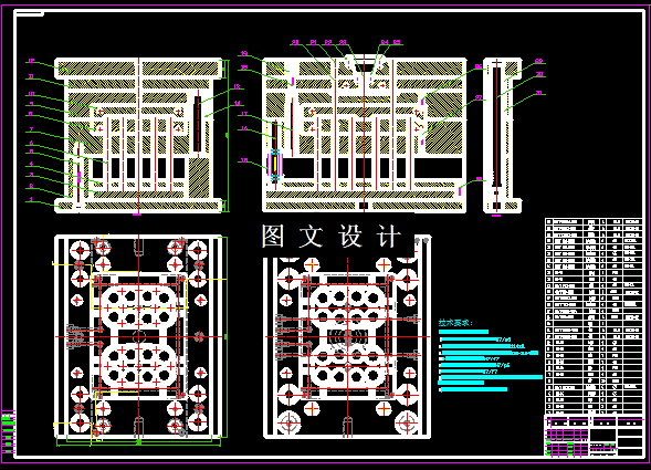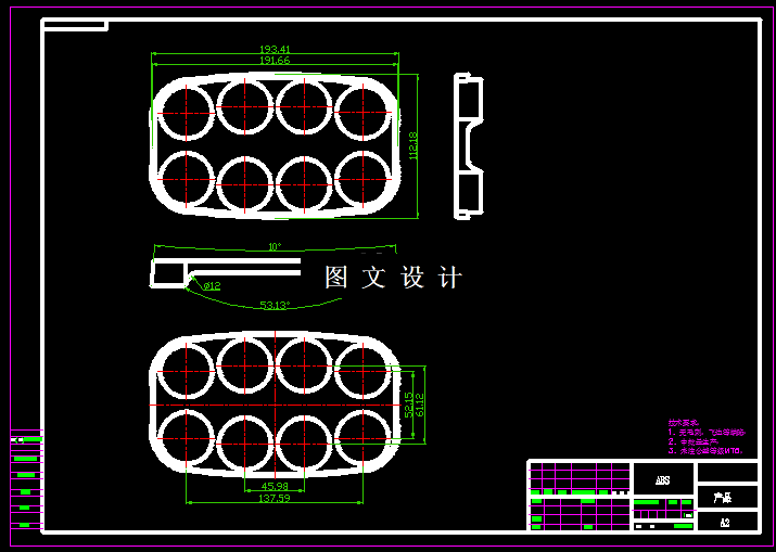 本次设计的课题,外形成长方形,底面有多个圆孔,材料选择ABS,生产批量为大批量生产,在保证塑件质量的前提下,需要提高生产效率,因此采用一模两腔或高速自动化生产来缩短生产周期,根据产品的结构,最终确定采用一模2腔设计,见模具3D图,平面图,设计说明。