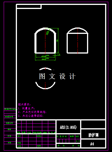 塑件高度在25mm以下时可以不考虑脱模斜度。本产品总高度为50mm,头部是球形,所以需要重新绘图测量出直边距离,由图可知直边尺寸为39.3mm,所以设计模具时脱模斜度为0.5°。整个模具结构见CAD图纸。862766