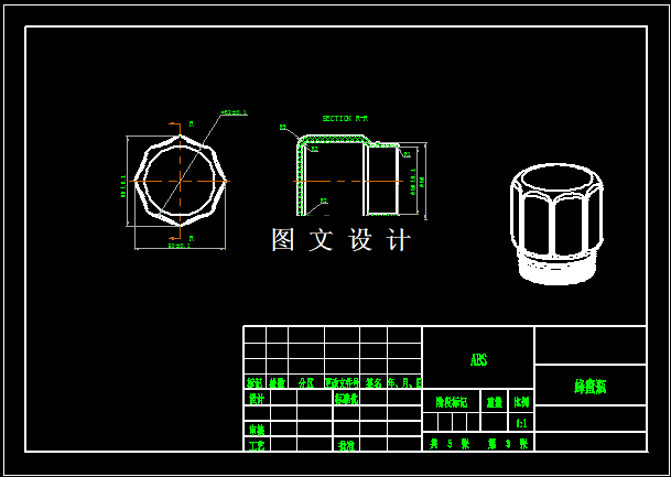 本次的蜂蜜瓶产品用的材料是ABS, ABS塑料所使用的途径很大,并且多方面都能使用,ABS主要是用各个化学聚合物组合而成,ABS塑料无毒无味、容易燃烧、不能自己熄灭,ABS塑料的密度是在1.02~1.08g/cm⒊ 这个范围之内。本次设计主要包括了对产品的分型做出合理的需求,确保足够的填充以及产品的质量,并且对主要部件做出计算以及模架的选取。