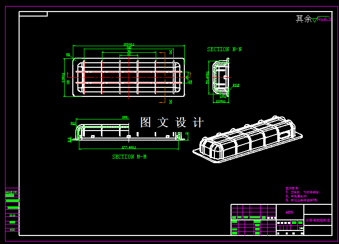 本次设计主要是冰箱电脑控制盒模具,需要结合这产品做出工艺和性能分析,并且要合理选取材料,对产品的表面以及精度要求有比较深刻的认识,合理的确定型腔结构以及分型面,并且选择满足要求的注塑机,确定合理的方案,以及浇注系统跟成型零件的计算。设计内容包括模具装配图,3D图,设计说明。