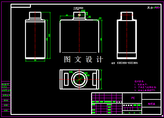 本设计中产品为拖把盖,该产品是一种形状简单的的薄型制品,根据实际使用情况,拖把盖采用PE,即聚乙烯(低压),该零件安装部分有圆孔,而且在侧面,在设计模具考虑到自动脱模,所以需要设计抽芯机构,才能实现自动脱模,具体见CAD图纸,