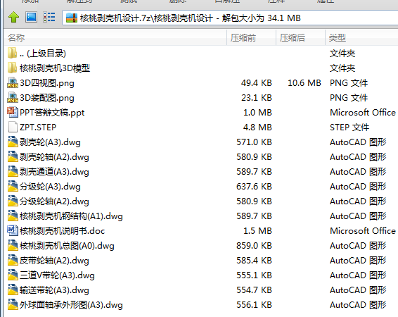本次核桃剥壳机设计代表了设计的一般过程, 难免存在各种纰漏、失误。权当一次难得的实践过程,希望对今后的选型设计工作有一定的参考和借鉴价值。