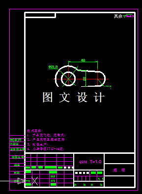 本次设计的课题名字是摇臂,工件两头尺寸不一样大,如果采用复合模,可以采用错开排样法,提高材料利用率,本次设计要求是设计级进模,只能采用直排结构,如图所示,设计出该模具的结构图,编制设计说明。