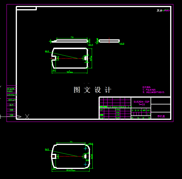 该产品为某一品牌手机上的机构件,生产需求量比较大,属于比较典型的半封闭浅矩形件,适合采用级进模冲压,所选材料为SUS304-CSP,属于不锈钢材料,基本工序有落料,拉深,整形,冲孔,切边等,具体几次拉深需要通过计算拉深系数,然后设计出合理的模具结构图,编制设计说明。
