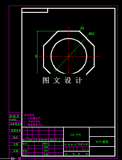 本次设计的课题是内外螺母,中间是圆孔,外形是八边形,四周R角过渡,由于该工件的生产批量较大,如果把这道工序放在一起,可以大大提高工作效率,并减轻工作量,但是由于工件材料厚度是9mm,所以不适合采用复合模具,只能采用多工位级进模生产,所以本次设计内容为冲压级进模,装配图,零件图。