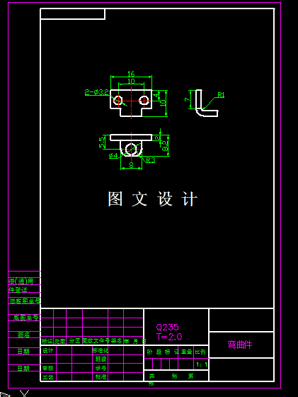 此制件的形状较简单,是简单的V形件,孔与边缘间的距离为2.4mm,0.7mm,1.4mm,这些尺寸均小于1.5t,所以冲孔和落料必须分开做,这里可以有两个方法,一是单模,落料,冲孔分开,做两副模具,由于该产品尺寸很小,年产量又很大,这样的方法不大现实,因此,采用方法二冲孔落料级进模,本次设计就是针对这样的级进模,进行设计,设计其模具结构图,零件图,说明书,冲压规程和制造规程。