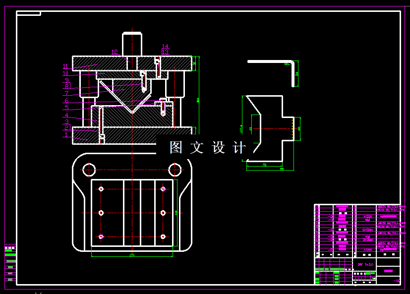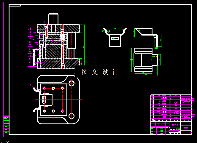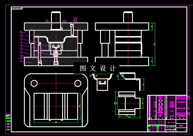 此制件的形状较简单,详细分解后,其实就是多次弯曲的零件,弯曲的方向不同,所以需要设计多副模具,工件外形需要圆角过渡,材料厚度为3毫米,材质为08F,所以可以加上R1.5,便于模具的加工和减少冲压时在尖角处开裂的现象,同时也可以防止尖角部位刃口的过快磨损。