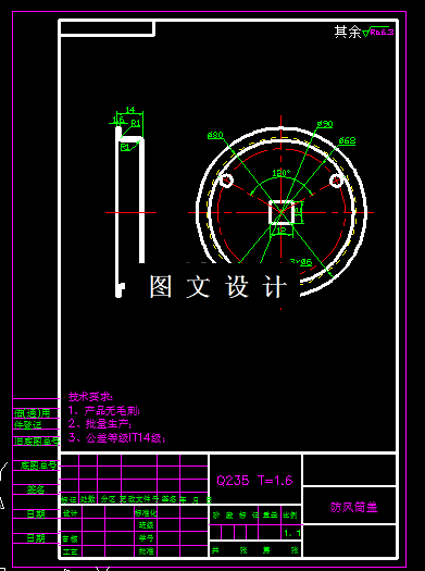 针对工件防风筒盖,根据形状分析,工件有落料、拉伸、切边、冲孔等工序,结合计算和工序的合理安排,本次设计,可以将落料拉深一起合并成落料拉深模,切边单独一副,产品上孔到拉伸边缘距离太近,需要单独设计冲孔模,所以本产品共三道工序,设计内容包括平面图,设计说明书。
