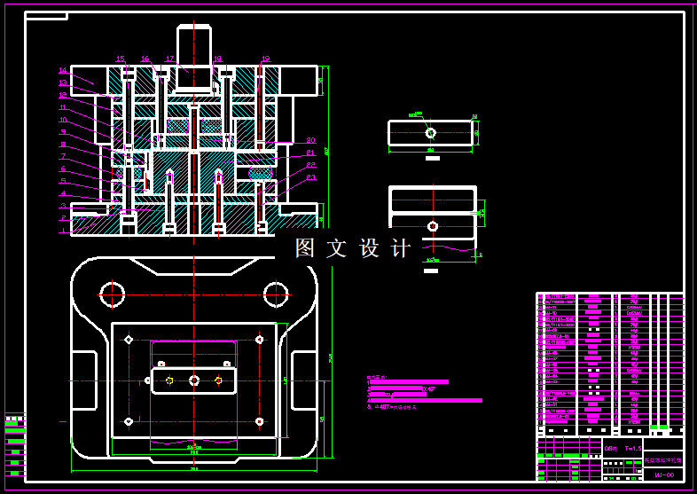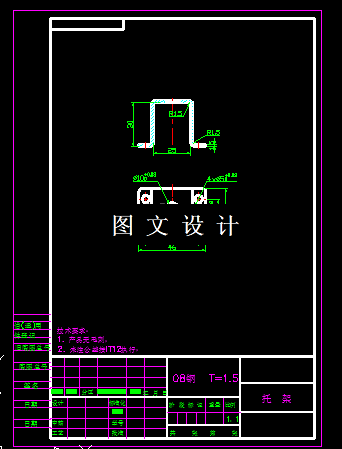 此产品从形状分析,属于多角弯曲零件,弯曲的形状比较规则,可以按四角弯曲的公式计算其展开尺寸,也可以按中性层不变的原则计算,所以粗略还是按弯曲变形计算,后期按实际模具间隙和模具结构调整此尺寸,本次设计内容包括落料冲孔模,冲小孔模具两幅模具的图纸,设计说明书。