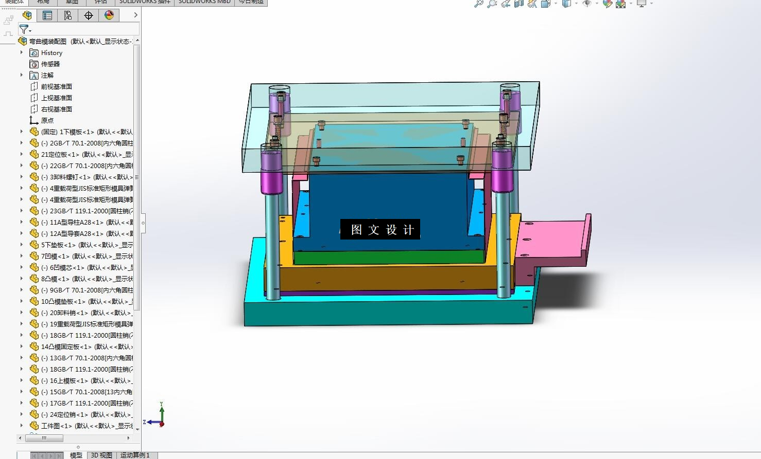 本次设计的后箱体支架形状较简单,整体呈U形对称,所选材料为Q235,四角无圆角过渡,所以展开后尖角处需要增加过渡R角,根据产品材料厚度1.0,选择过渡R角为R1.0,弯曲形状需要通过多次才能实现,弯曲过程中还需要考虑工件的回弹,干涉等问题,保证模具的寿命和工件的稳定性。