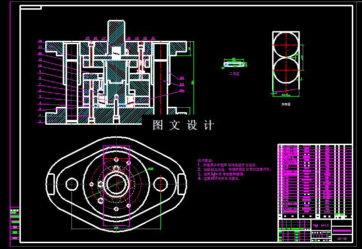 本次设计课题名是挡油圈,从工件形状分析,该工件中间有拉深,四周反拉深,拉深高度不大,预计可以通过一次复合模实现,不过具体拉深系数需要经过计算得出结果,然后通过反拉深实现。本次设计内容包括平面图,装配图,立体图。