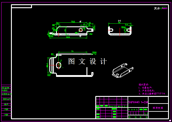 本次设计的课题是脚后支架零件,从工件形状分析,主要的加工工序是下料、打孔、打弯,主要是通过这三个工序实现,弯曲的方向不一致,所以打弯还需要两次才能实现,所以本次设计只需要设计下料和打孔两个基本工序,通过尺寸分析选择复合模。
