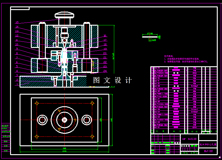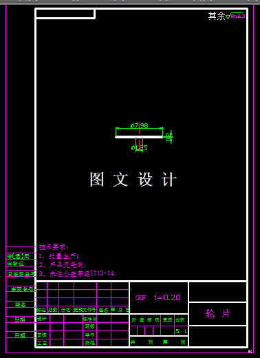 本次设计的工件名字是轮片,该零件形状简单,有外形和孔,所以有落料和冲孔这两个基本恭喜,可采用的冲裁方案有单工序冲裁,复合冲裁和级进冲裁这三种,零件属于中批量生产,因此采用单工序模具比较适合,本次设计只设计其中的冲孔模具,包括模具平面图和三维图。