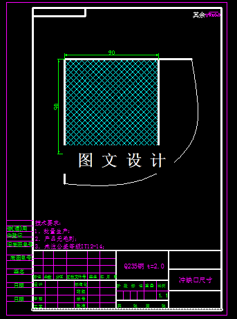该模具为通用模具,可冲切零件角部的正方形、矩形缺角。其冲切范围为0~90×90之间的任意组合正方形缺角或矩形缺角,所以需要设计成可调结构,难点就在与可调结构。