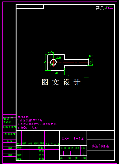 钥匙在现代生活中主要用于锁的开启。根据钥匙制作材料的不同,将其分为铜制钥匙、铝制钥匙、铁制钥匙等等材质的金属钥匙。此类零部件属于大批量加工,采用横模有助于连续大规模的快速加工成型。防盗门钥匙在进行模具冲压设计时,需要先从其工艺部分分析开始,首先针对其材料属性和应采用的冲裁性能进行确定钥匙制作的方案。