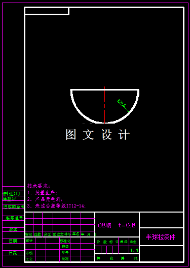 本次设计的课题为半圆形零件,从图形形状看,是半个球体,看上去很简单,也好理解,但是设计模具时考虑的更多,需要考虑修边余量,展开尺寸计算公式,此方法是否适合球形零件,