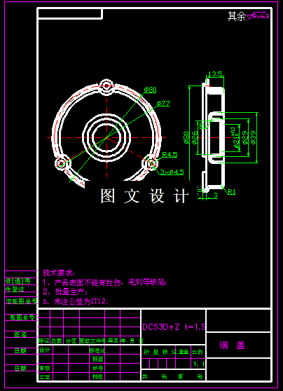 本文主要是结合端盖零件的要求,对其做出合理的技术分析,对零件的毛坯展开尺寸,拉伸系数等进行计算,以及模具的成型零部件做出计算,选择合理的压力机,设计出合格的模具结构,同时设计出模具结构图和散件图。842058