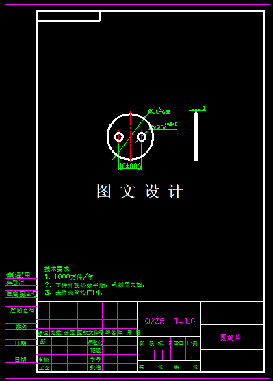 本次设计的工件为圆垫片,所选择的材质为Q235钢,该类材料为普通碳素钢,强度低和硬度、塑性、韧性好,易于深冲、拉延、弯曲和焊接。适合冲裁加工。