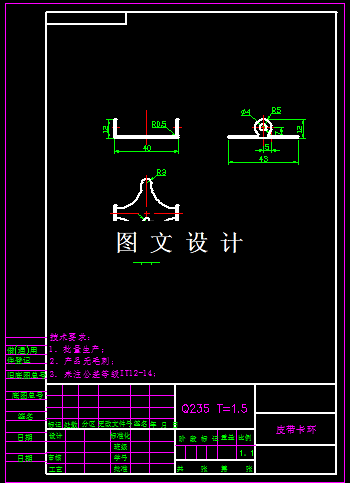 材料为Q235,普通碳素钢,材料厚度 =1.5mm,要求表面无划痕、孔不允许严重变形、冲口无毛刺、弯曲无裂纹。设计其冲压模,确定冲压工艺方案。(Q235材质的屈服强度是240MPa,抗拉强度约是440-470MPa,抗剪强度约是310-380MPa,具有良好的塑性,其冲裁、成形加工性较好。)