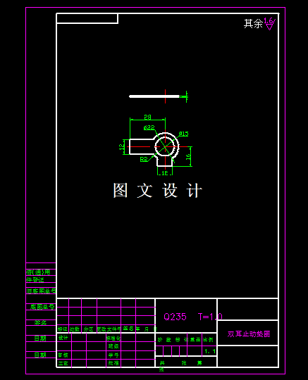 先分析零件的冲压工艺;确定模具的总体结构;结合零件的冲压工艺及模具的总体结构设计排样图;根据排样图,计算利用率、冲载力、压力、选用设备及刃口的尺寸。根据资料再用PRO/E,对模具进行设计。然后将三维图转成二维的装配图和零件图进行标注,并编制零件的加工工艺卡。